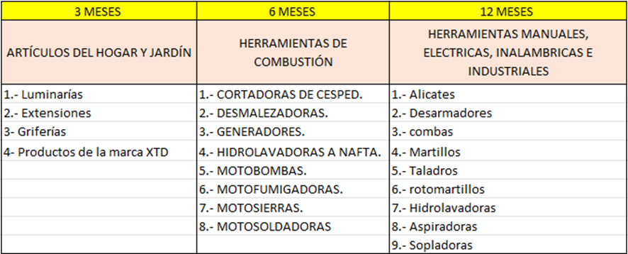 2.1 La garantía del producto cubre de acuerdo con las descripciones del producto, pude ser de 1 año, 1 mes, 3 meses, 6 meses, entre otros. *(ver cuadro de garantía según el producto)